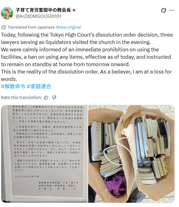 On March 4, the Tokyo High Court upheld the dissolution order against the Family Federation for World Peace and Unification — formerly the Unification Church. After a year-long legal battle, a court-appointed liquidator was named that same day.