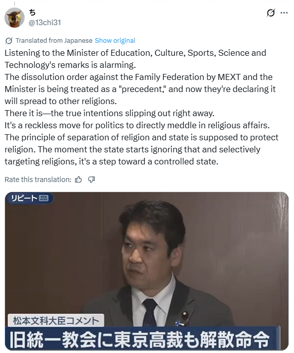 "The court has established that illegal fundraising and solicitation can constitute grounds for a dissolution order. We will share this standard with prefectures nationwide, and if similar conduct is found in other religious corporations, we will respond accordingly."